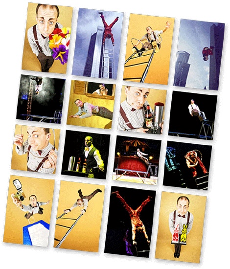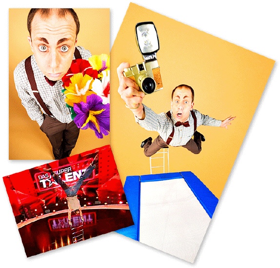Erleben Sie den Senkrechtstarter auf Trampolin und Leiter, mit Höhenflügen, Bauchlandungen, orginal Zauberutensilien, riesigem Spaß und einer Überraschung nach der anderen!